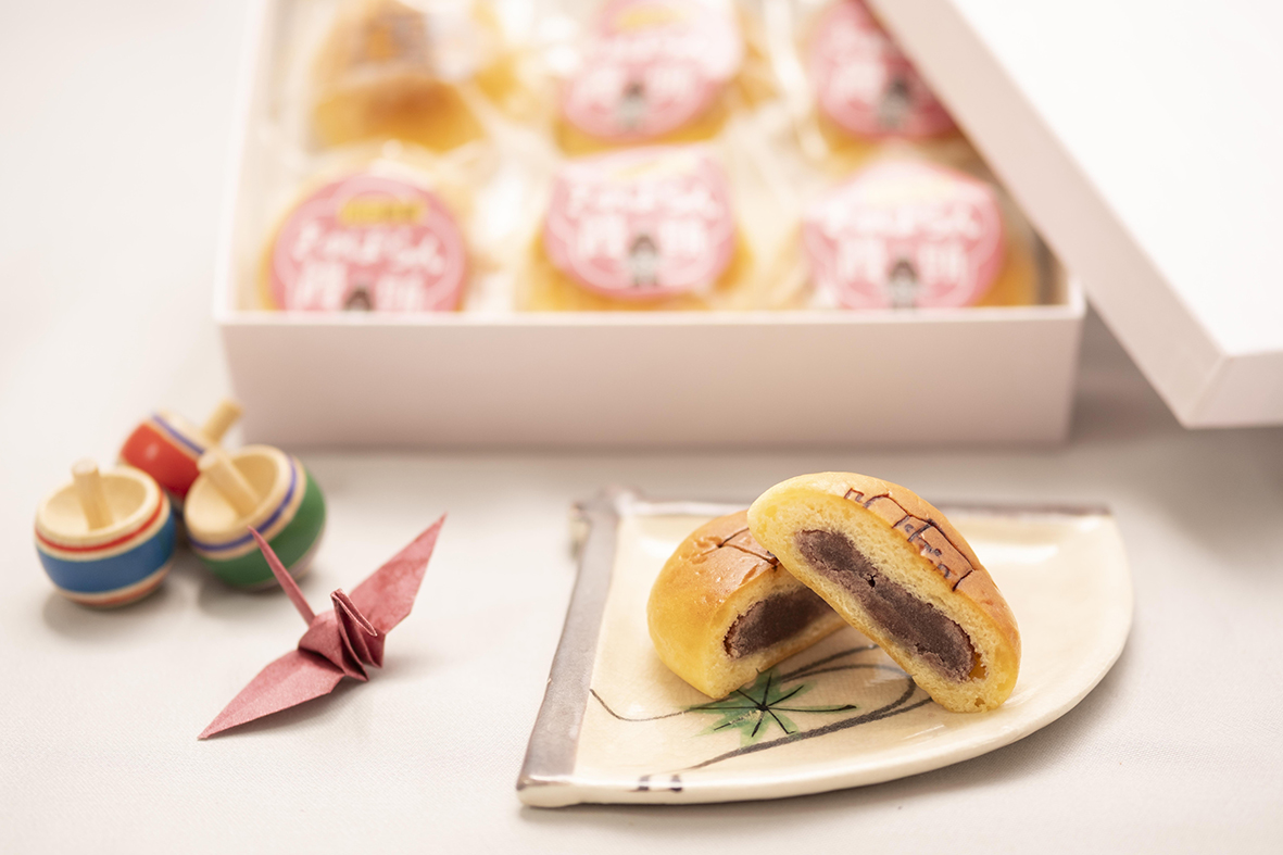 南平地区にあった地名“十二月田(しわすだ)”その地名の由来は「十二月に狐が杉の葉で田植えのまねをしていた」という不思議な話。その由来をモチーフに、こんがりきつね色に焼きあげました。かわいいイラストが目印です。