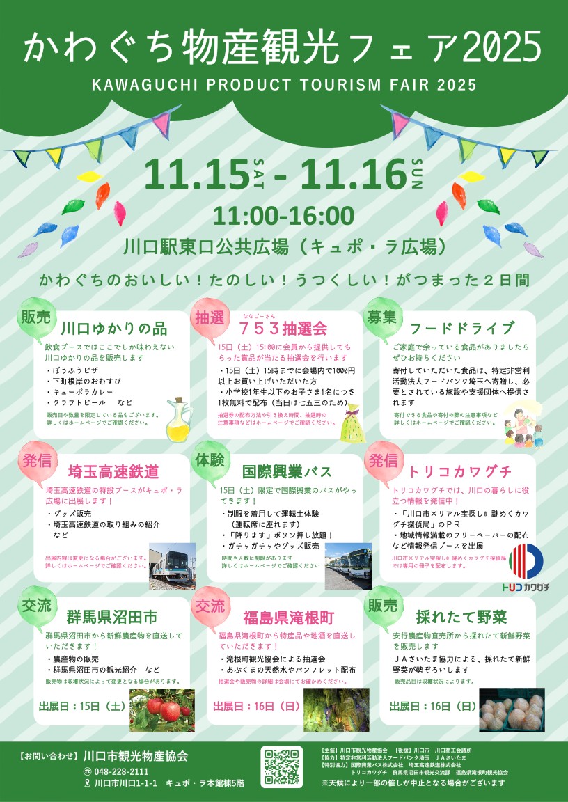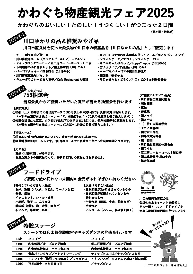 川口市観光物産協会では、「かわぐち物産観光フェア2025」を開催します。